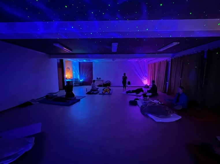 Les facilitateurs expliques de déroulement de la séance, les consignes et répondent aux diverses questions. Préparation de chaque place confortable pour une détente maximale (nous avons tout le matériel à disposition). Une fois installe un temps de relaxation est posé. La session commence par une musique douce et accompagnée afin de se relaxer un maximum et de préparé peu à peu au voyage. Puis la musique deviendra plus rythmée avec relaxation et du mouvement, favorisant une libération du corps et pour entrer en cohérence avec le souffle, médecine du Prana. La respiration va gentiment s’approfondir et devenir de plus en plus rapide, sans interruption entre l’inspiration et l’expiration. Au fil de la pratique, vous éprouverez des sensations physiques et des émotions car l’objectif est d’atteindre une part de soi et d’y explorer la dimension de l’inconscient. Une fois le processus enclenché, la traversée commence pour une durée de 1h15 env. Après de temps de voyage une phase de retour au calme et d’intégration est prise.
